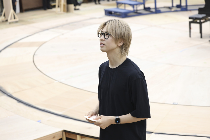 かをりのソロ「旅に出よう」で一幕が終わり、全員を集めた上田一豪は「すごいです!」と第一声。「こうやって繋げていきながら修正をかけていきますが、セットが階段しかない舞台なので、いかに人が空気と時間を作っていくかが大事です。原作の漫画は読んでいる人がページをめくるけれど、舞台ではみんなで一緒にページをめくっていく作業が必要。本のようにめくり返したりできないので、物語を運んでいく時に、その場でどこまでの情報をお客様に伝えていくかも重要。演じる側が、毎回新鮮にその瞬間を生きていることがお客様に伝わっていくので、その新鮮さを10月まで味わい続けて、深めていけたらいいなと思います」と語りました。