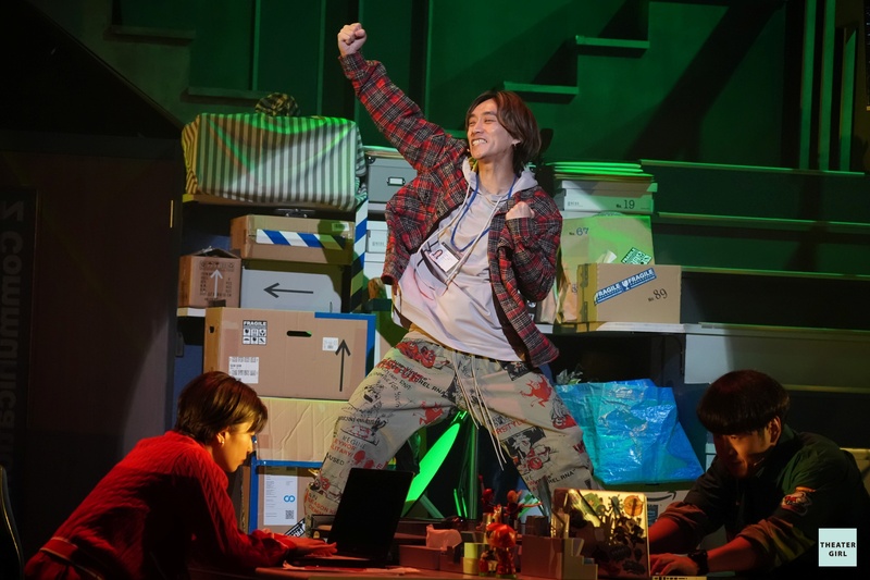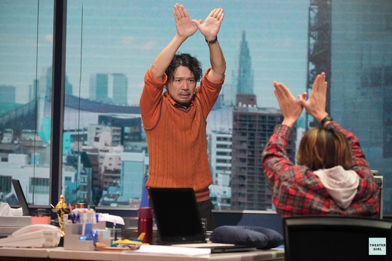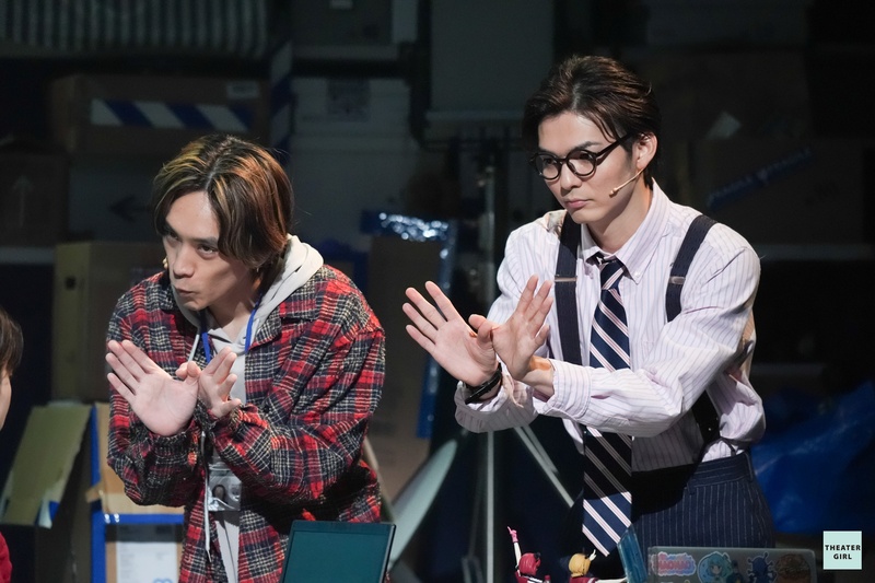 僕が演じる森山はこの会社のデザイナーをやっていて、普段はさえない男なのですが、ひそかにアイドルオタクをしています。稽古場で休憩中にカウントの音がふと流れたりしたときに、つい身体が動いてしまうくらい音に調教されていました(笑)。