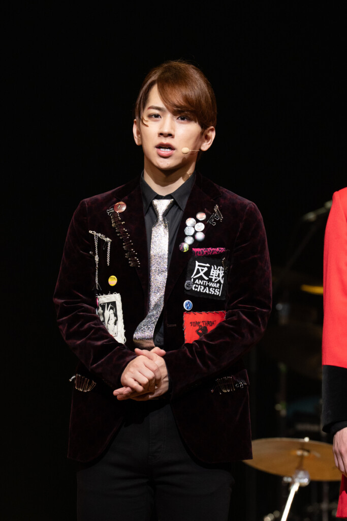 アンザイ役のISSEIです。僕は劇中のバンド「クラピス」でボーカルを務めています。 今回、初めて劇中で歌を披露するのですが、アンザイとして一番見ていただきたいポイントはやはり「歌」です。キャストの皆さんと長い時間をかけて稽古を積み重ねてきたので、今日こうして初日を迎えられたことが本当に嬉しいです。ボーカルとして、しっかりと歌い上げて会場を盛り上げたいと思います。